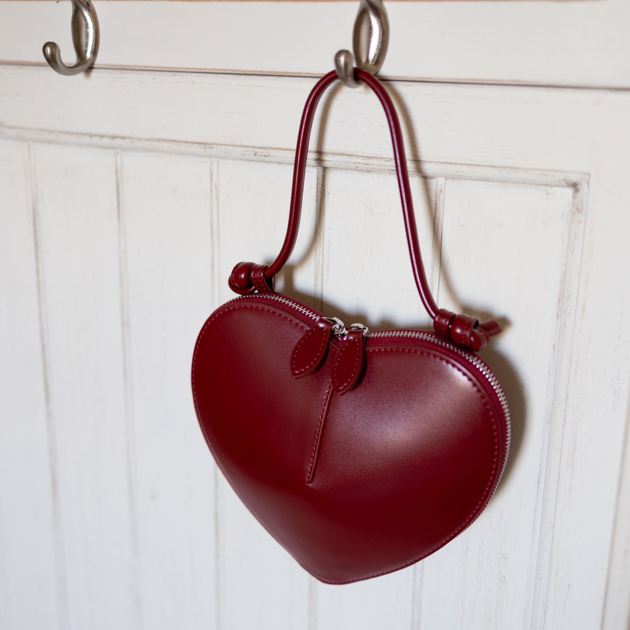 Realizzata interamente in vera pelle italiana, ha una struttura rigida a forma di cuore